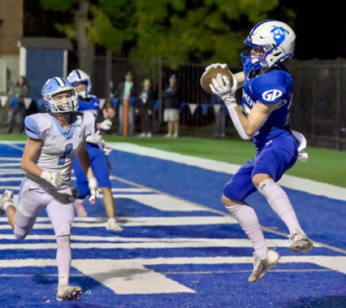 LIB #1 watches as GP #25 catches a TD pass GP wins over Liberty, 52-28