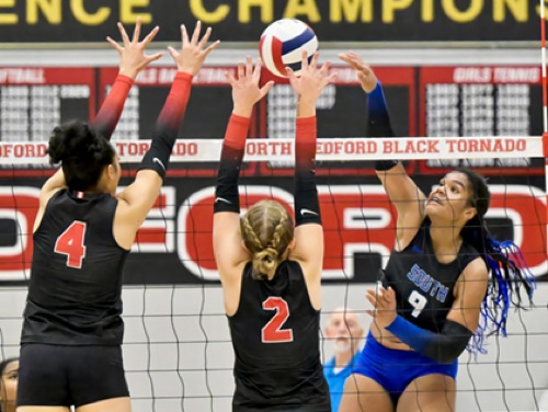 (L to R) NM #4, NM #2, SM #9 30-28 North Medford wins 25-22 South Medford wins 25-23 South Medford wins 25-14 North Medford wins 15-12 South Medford wins