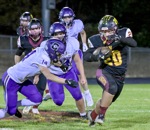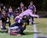 NV #51 and NV #21 swarm CC #8 but not before he extends the football to break the plane and score CC's 6th TD Cascade Christian wins over North Valley, 41-6