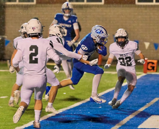 With 4:06 left in the 3rd qtr., GP #21 breaks over the goal line for GP's first TD West Salem wins over Grants Pass, 40-14