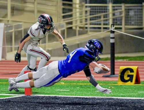 With 6:03 left in the game, SMED #34 dives across the goal line for SMED's 7th TD. (Sandy #1 looks on)
