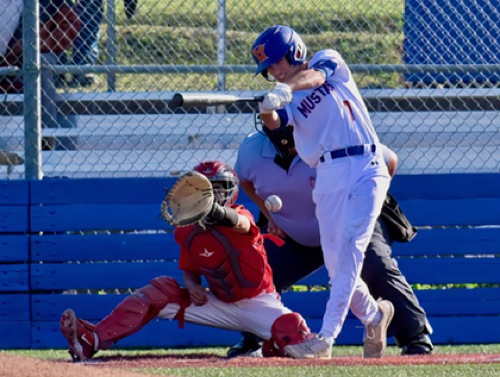(3rd inning) HV #17 connects for a single. Hidden Valley wins over Klamath Union, 10-0. Photos By Joel Takarsh
