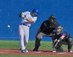 (3rd inning) GP #11 connects on this pitch and makes it to first on a throwing error...that error allowed the runner on 2nd to advance to 3rd base GP wins over South Eugene, 8-5 Photos By: Joel Takarsh