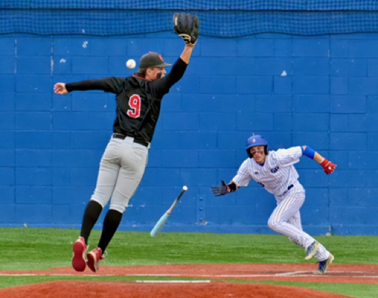(Bottom of 7th) GP #3 hits this pitch over NM pitcher #9's head. The ball is backup fielded by the NM 2nd baseman who makes a bad throw to 1st. GP run comes in...GP wins 3-2.