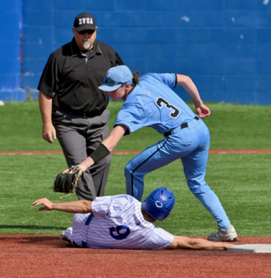(2nd inning) GP #9 gets his hand to the bag before Lakeridge #3 can make the tag (stolen base)