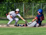 (4th inning) Mustangs #13 hits to shallow center for an RBI double Medford Mustangs win over GP Nuggets, 9-7 (1st game) Photos By: Joel Takarsh