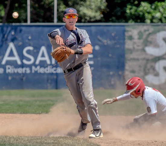 Photo by JOEL TAKARSH/for The Daily Courier PIC #0453 Nuggets #10 throws to first base to turn a double play.