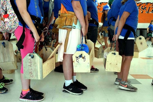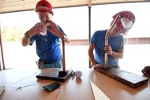 Scenes from the Girls Build camp at Lincoln Savage Middle School in Murphy on June 30, 2017. Girls Build Executive Director Katie Hughes, a graduate of Lincoln Savage and Hidden Valley High, said 42 girls between the ages of 8 and 13 participated in the five-day camp. Activities included carpentry, masonry, wiring, plumbing and painting, and a playhouse built by campers will be donated to the Women's Crisis Support Team's safe house. (Scott Stoddard/Daily Courier)
