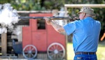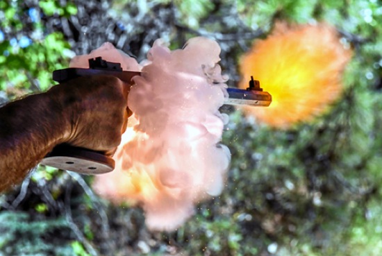 Photo by JOEL TAKARSH/for The Daily Courier PIC #0371 Black powder competition pistol being fired