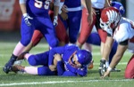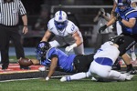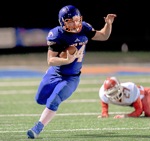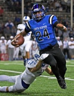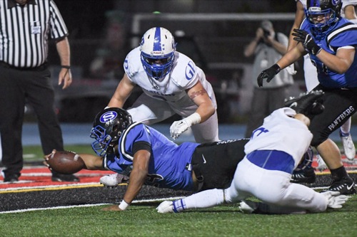 South Medford's Jaylin Parnell reaches out with the football to break the plane of the end zone for one of his five touchdowns against Grants Pass at Spiegelberg Stadium. The Panthers prevailed over the Cavemen, 40-21.