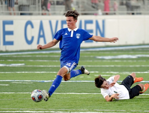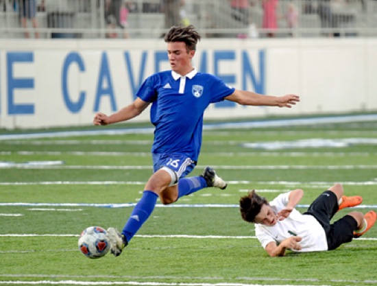 Photo by JOEL TAKARSH/for The Daily Courier, PIC #0018 (L to R) GP #16, Sheldon #1 - With this kick of the ball GP #16 scores GP's first goal of the game GP wins 4-0!