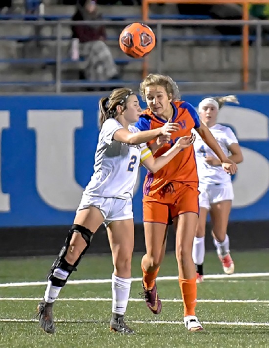 Photo by JOEL TAKARSH/for The Daily Courier, PIC #1237 (L to R) CG #2, HV #12 Lady Mustangs advance!!