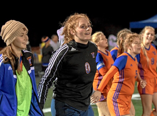 Photo by JOEL TAKARSH/for The Daily Courier, PIC #2522 HV goalie #0 Lady Mustangs go to State Finals!