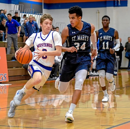 Photo by JOEL TAKARSH/for The Daily Courier, PIC #0424 (L to R) HV # 0, ST.M #34, ST.M #11 Mustangs win big!