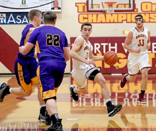 Photo by JOEL TAKARSH/for The Daily Courier, PIC #0037 (L to R) BAK #3, BAK #22, NV #3, NV #33 Knights lose it 56-43.