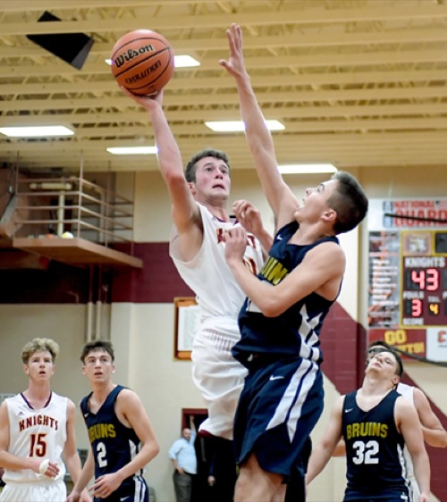 Photo by JOEL TAKARSH/for The Daily Courier, IC #1046 (L to R) NV #15, BRK #2, NV #24, BRK #12, BRK #32 Knights lose it 59-51