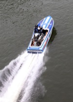 TIMOTHY BULLARD/Daiy Courier The drag boat Psychotic Behavior screams past a large crowd at the Riverside Park Boatnik event Saturday.