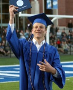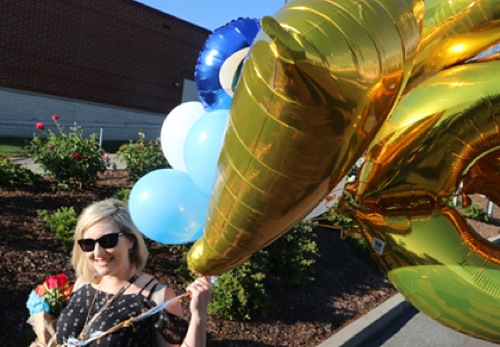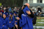 Laura Birmingham wrestled the wind with balloons for her graduating sister Ashley Hott on her way to the Grants Pass High School graduation ceremony Friday at Mel Ingram Field.