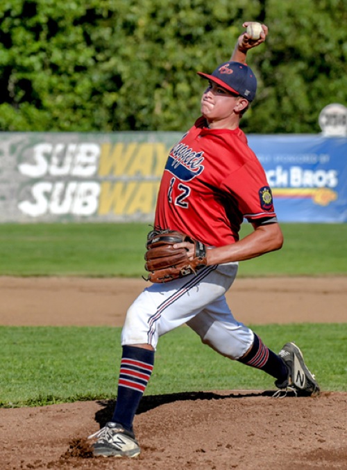 Photo by JOEL TAKARSH/for The Daily Courier, PIC #0163 Nuggets starting pitcher #12 Nuggets win first game of double-header 11-8.