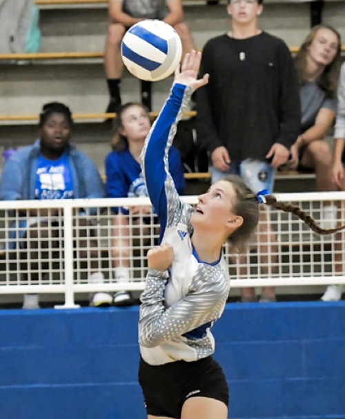 Photo by JOEL TAKARSH/for The Daily Courier, PIC #0168 GP #5 Tough night for Lady Cavers. Lose it 3 sets to 0.
