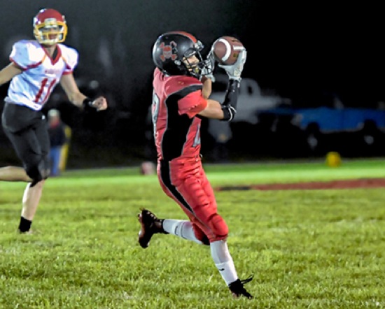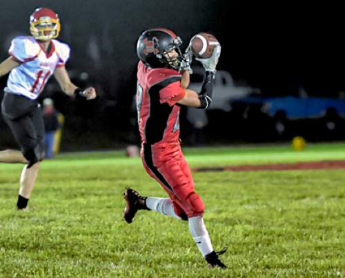Photo by JOEL TAKARSH/for The Daily Courier PIC #0299 GLND #13 catches a pass for a big gain Pirates go down to Days Creek 60-6.