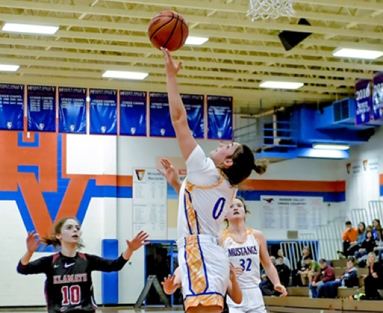 Photo by JOEL TAKARSH/for The Daily Courier PIC #0444 (L to R) KU #10, HV #0, HV #32 Mustangs win it easily 77-29 !