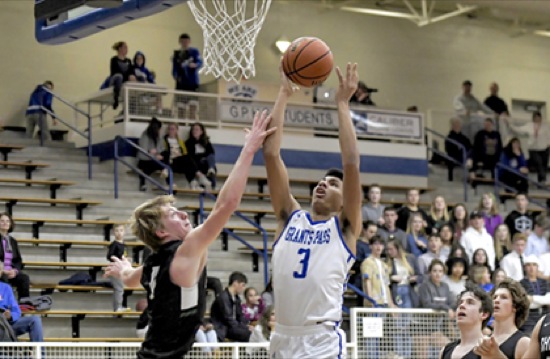 Photo by JOEL TAKARSH/for The Daily Courier PIC #0624 (L to R) SHLD #0, GP #3 Sheldon proves too much for Cavemen - GP loses 58-33