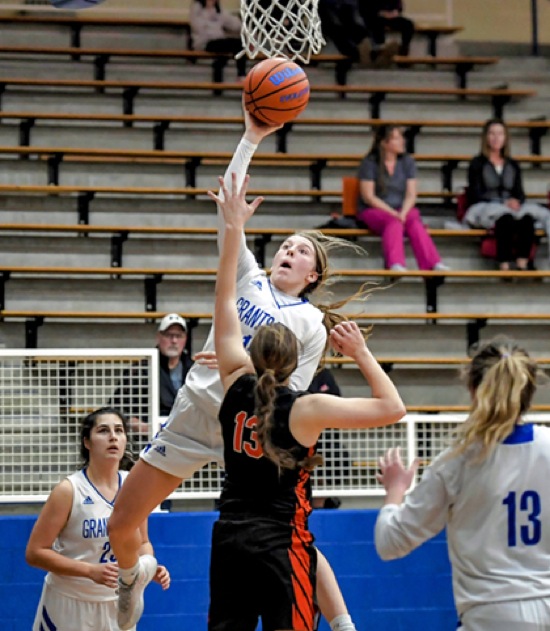 Photo by JOEL TAKARSH/for The Daily Courier PIC #0531 (L to R) GP #23, GP #15, RB #13, GP #13 Lady Cavers win it 45-31!