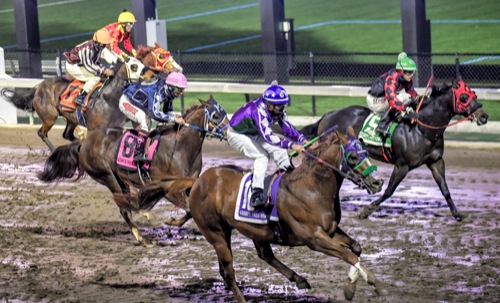Jockey #10 (foreground) wins the Far West Futurity in a 10-5-8 finish.