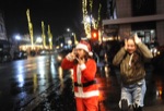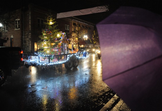 BEA AHBECK/Daily Courier An onlooker with umbrella watches the Christmas parade in downtown Grants Pass Sat. Dec. 11, 2021.