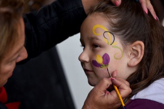 Bea Ahbeck/Daily Courier Izabelle Losey, 7, of Cave Junction, gets an Easter-themed face painting at the Grants Pass Shopping Center in Grants Pass Sat. April 9, 2022.