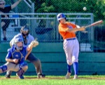 (1st inning) Machinist's #5 reaches for this pitch, connects and drives in 3 runs.