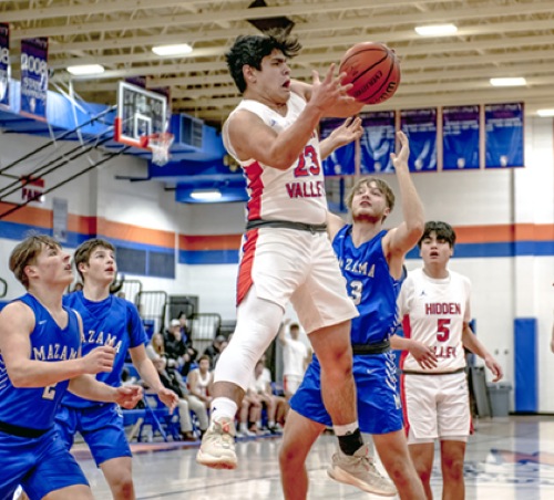 (L to R) MZ #2, MZ #4, HV #23, MZ #33, HV #5 Hidden Valley wins over Mazama in overtime, 68-61.