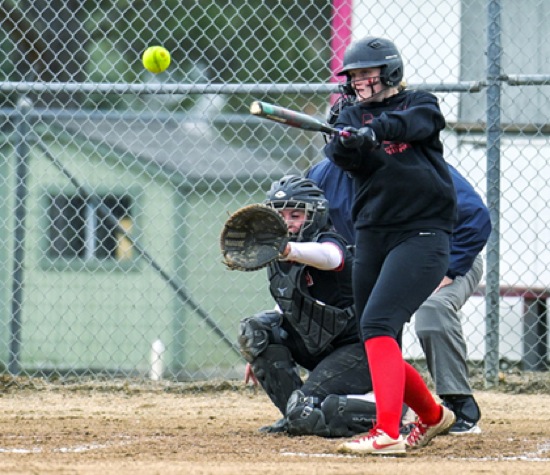 (2nd inning) IV's first baseman #18 punches this pitch for a single Illinois Valley wins over Bonanza, 12-2 in 5 innings.