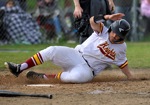 (4th inning) Driven in by a single by NV #5, NV # 25 slides into home plate for NV's 3rd run Siuslaw wins over North Valley, 16-13