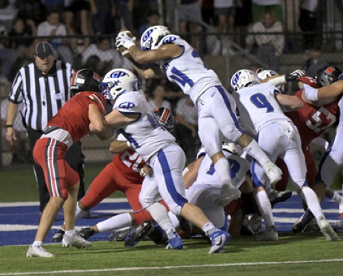 GP #24 takes a mighty leap over the goal to score GP's first TD