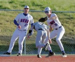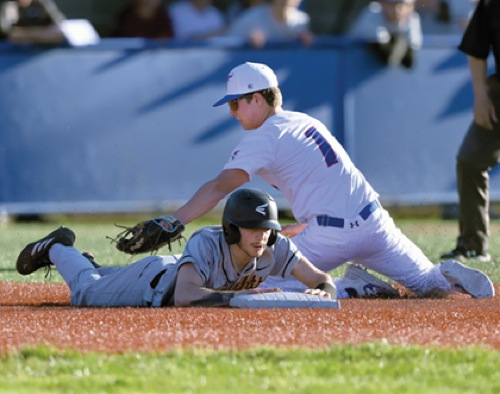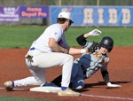 (5th inning) NV #15 just gets under the tag from HV #1 to steal 2nd base North Valley wins over Hidden Valley, 3-1