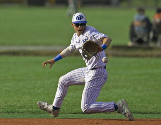 (7th inning) GP 2nd baseman #6 fields a sharply hit ball GP wins over Roseburg, 7-0