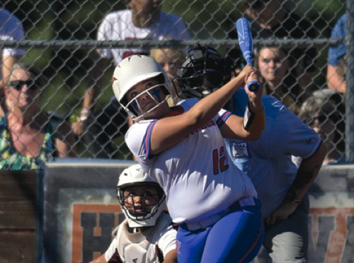 THE EYES TELL THE STORY ...HV #12 watches as her home run ball goes over the fence scoring 2 runs Hidden Valley wins over Junction City, 12-3
