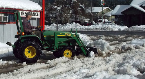 JEFF DUEWEL/Daily Courier Nick Leras used his tractor to plow a business parking lot in Cave Junction.