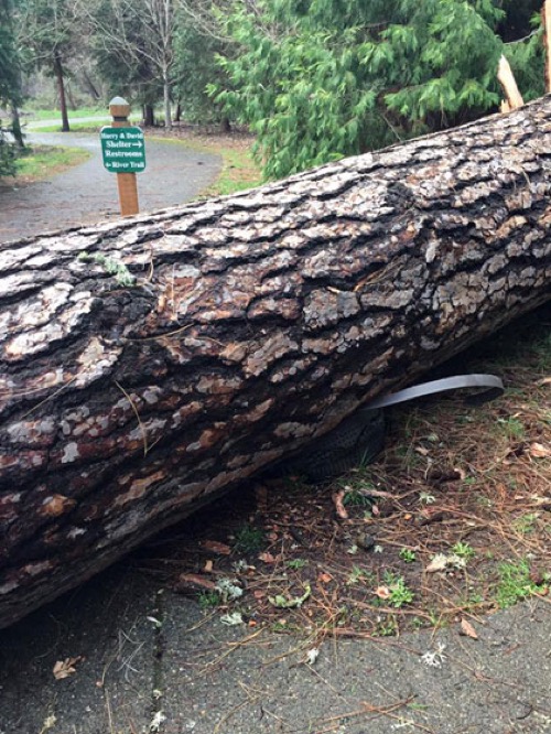 Photo by JULIE HALLThis large tree fell in across a walking path in the Reinhart Volunteer Park this weekend.