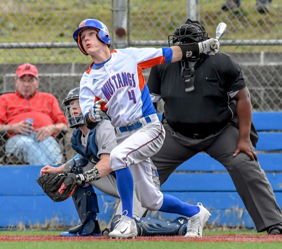 Photo by JOEL TAKARSH/for The Daily Courier PIC #0054 (1st inning) HV #4 watches his hit go for an RBI double making the score 1-0.