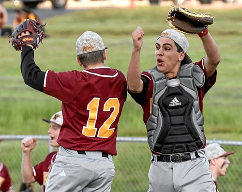 Photo by JOEL TAKARSH/for The Daily Courier PIC #1406 NV starting pitcher #12 and NV catcher celebrate the victory