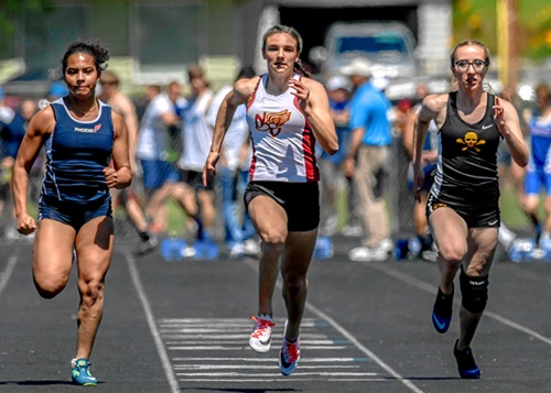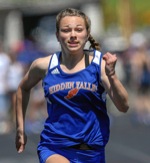 Photo by JOEL TAKARSH/for The Daily Courier PIC #0600 NV's Baylee Touey in the Women's 100M