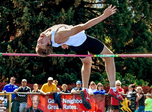 Photo by JOEL TAKARSH/for The Daily Courier PIC #0034 GP's Taylor Phillips clears 6' 4" in the men's high jump