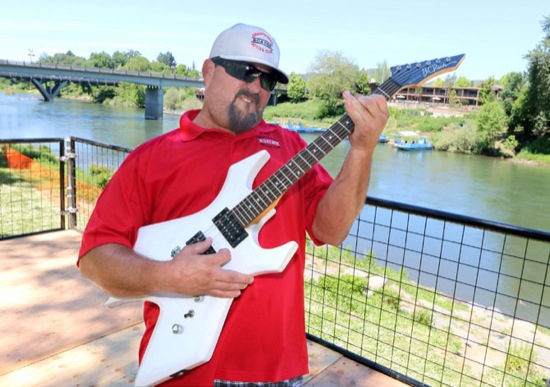 Active Club member Andrew Geisemann is ready to rock, at 100 pounds lighter than he was a year ago at Boatnik. Giesemann was instrumental in bringing rock and roll band Jack Russell's Great White to Boatnik. The concert is 7 p.m. Friday on the softball field at Riverside Park and Russell will autograph and raffle this guitar, donated by Cash Connection, during the show.