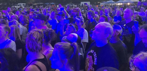 Photo by ANDREW GIESEMANN The crowd's faces reflect blue light coming off the stage at the Great White performance at Boatnik Friday.