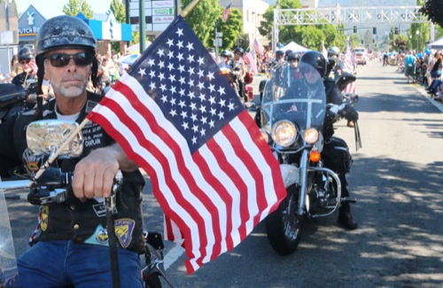 The Old Guard motorcycle club brought red, white, blue and Harleys to the Boatnik Parade Saturday.