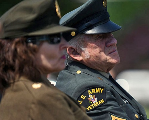 John Hudick and Mary Beth Huffman of Grants Pass attend the Memorial Day service at Hillcrest Memorial Park on May 29. 2017. Hudick was an Army radar technician from 1955 to 1963. (Scott Stoddard / Daily Courier)