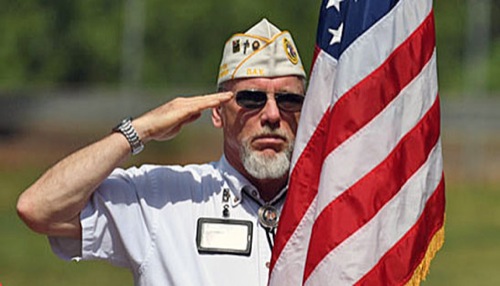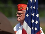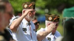 Rex Nofziger salutes during the singing of the national anthem at the Memorial Day service at Hillcrest Memorial Park on May 29. 2017 (Scott Stoddard / Daily Courier)